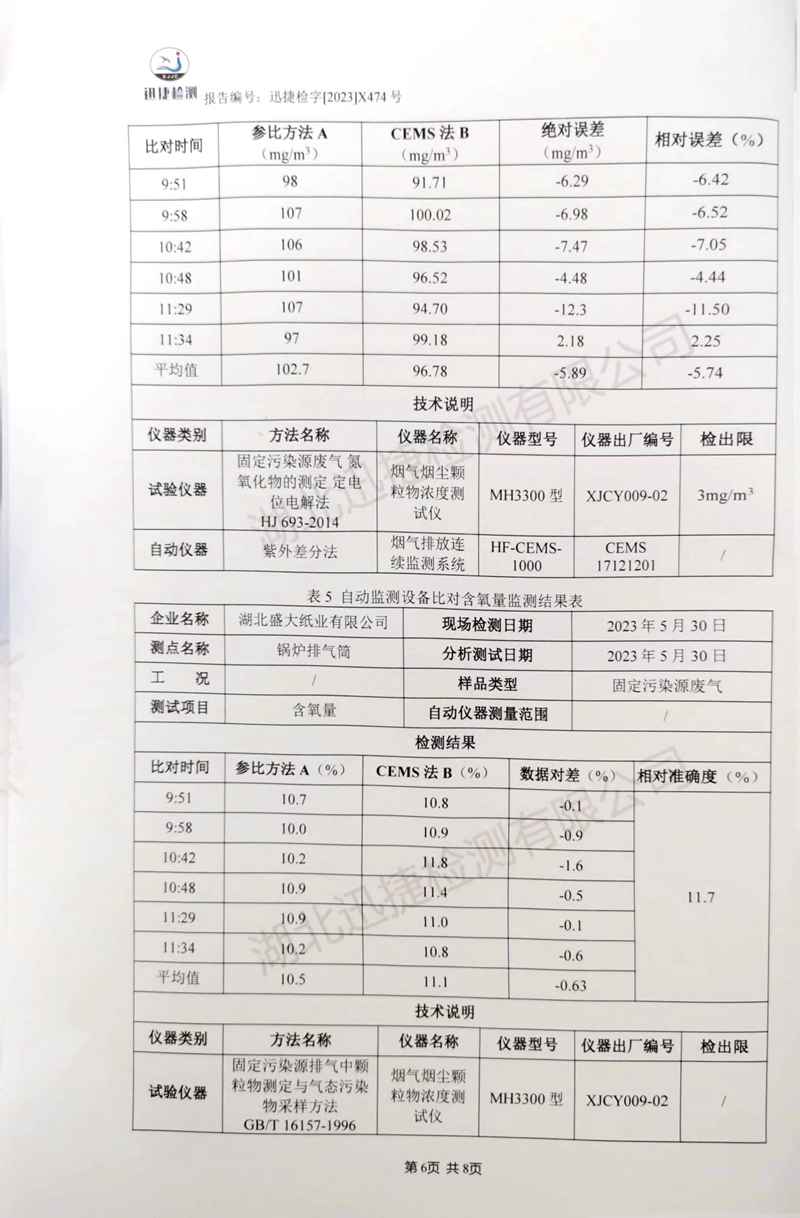 2023年第二季度煙氣自動監測系統比對監測