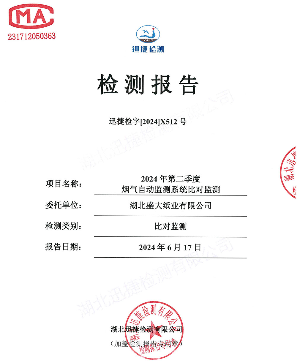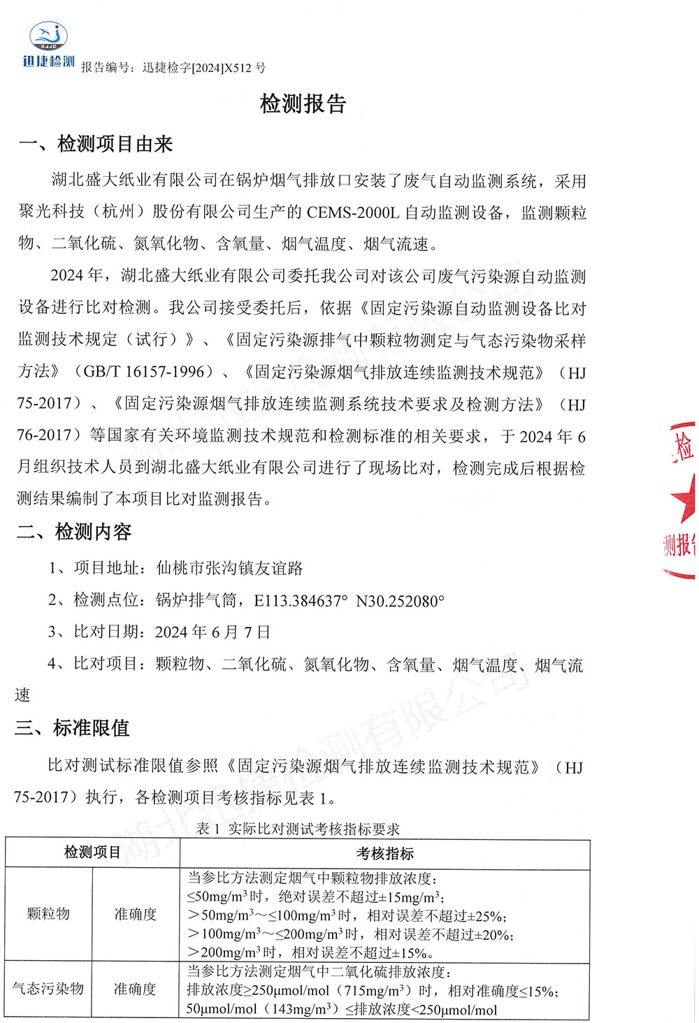 ·您當前的位置是:首頁公司動態X512 湖北盛大紙業有限公司2024.6月煙氣自動監測系統比對監測報告[信息公開]