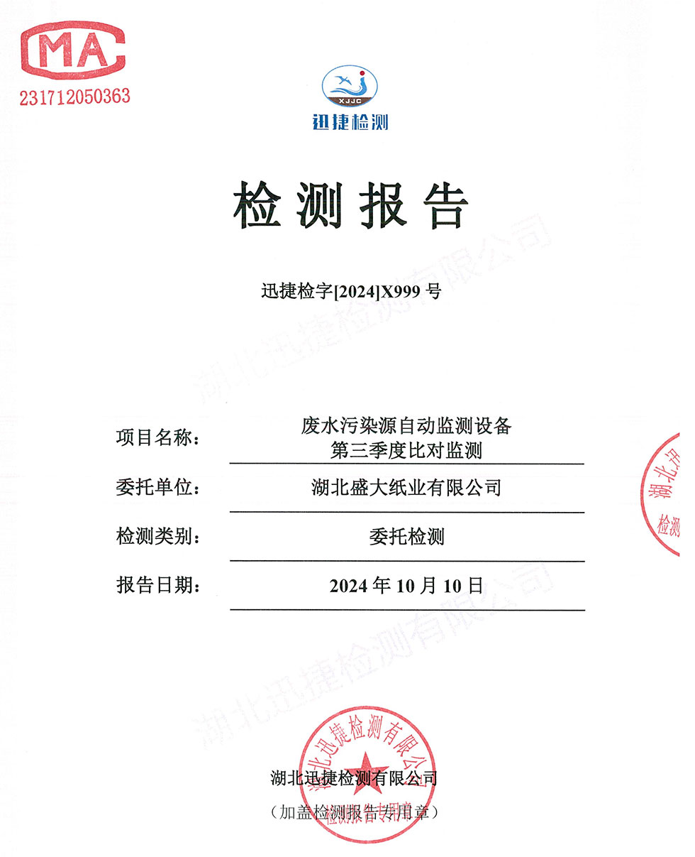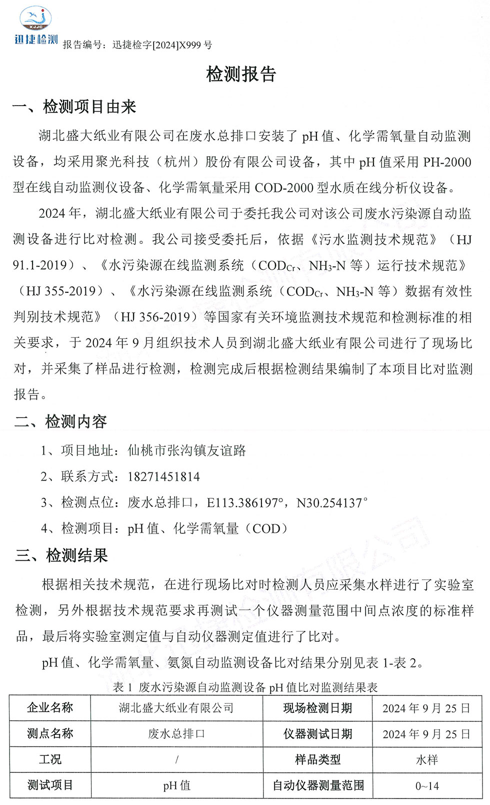 ·您當前的位置是:首頁公司動態X999 湖北盛大紙業有限公司廢水比對[信息公開]