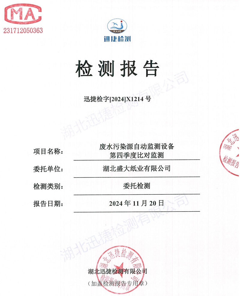 ·您當(dāng)前的位置是:首頁公司動態(tài)X1214湖北盛大紙業(yè)有限公司2024.11月廢水比對[信息公開]